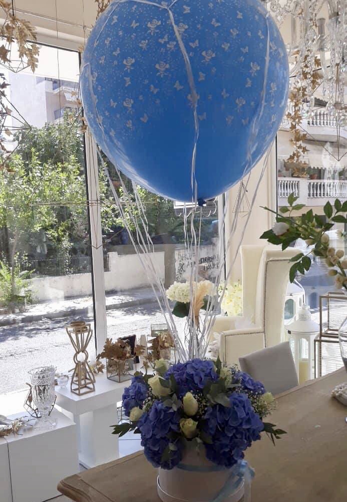 Αερόστατο μπαλόνι με κουτί γεμάτο λουλούδια