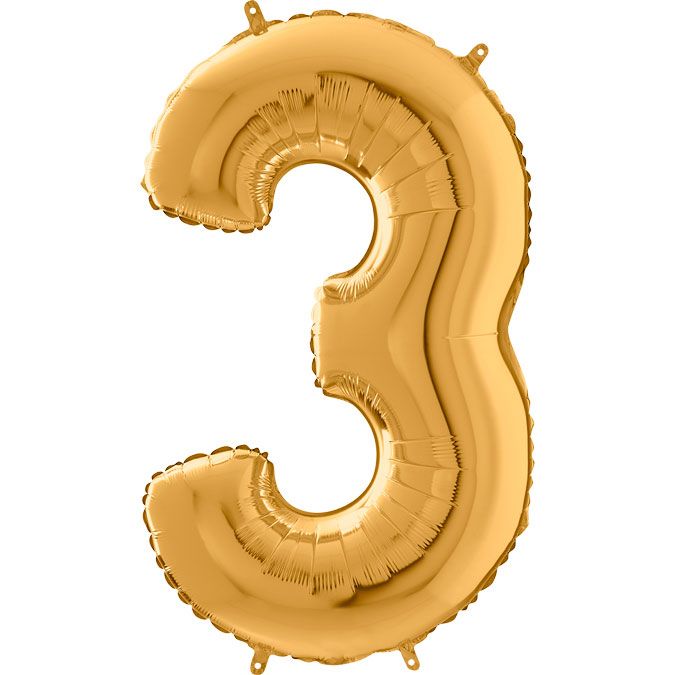 Number 3 in balloon gold, 66 cm