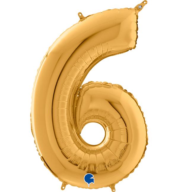 Number 6 in balloon gold, 66 cm