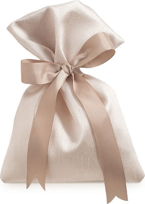 Wedding favor in satin pouch with ribbon.